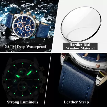 Luxury Men’s Sports Wristwatch Quartz Chronograph Waterproof Leather